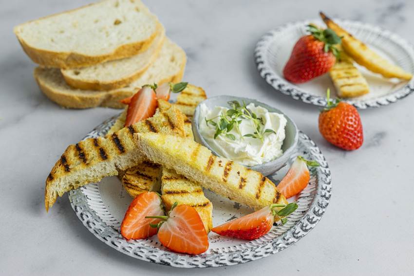 Grillede brødpinner med kremost og jordbær