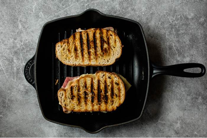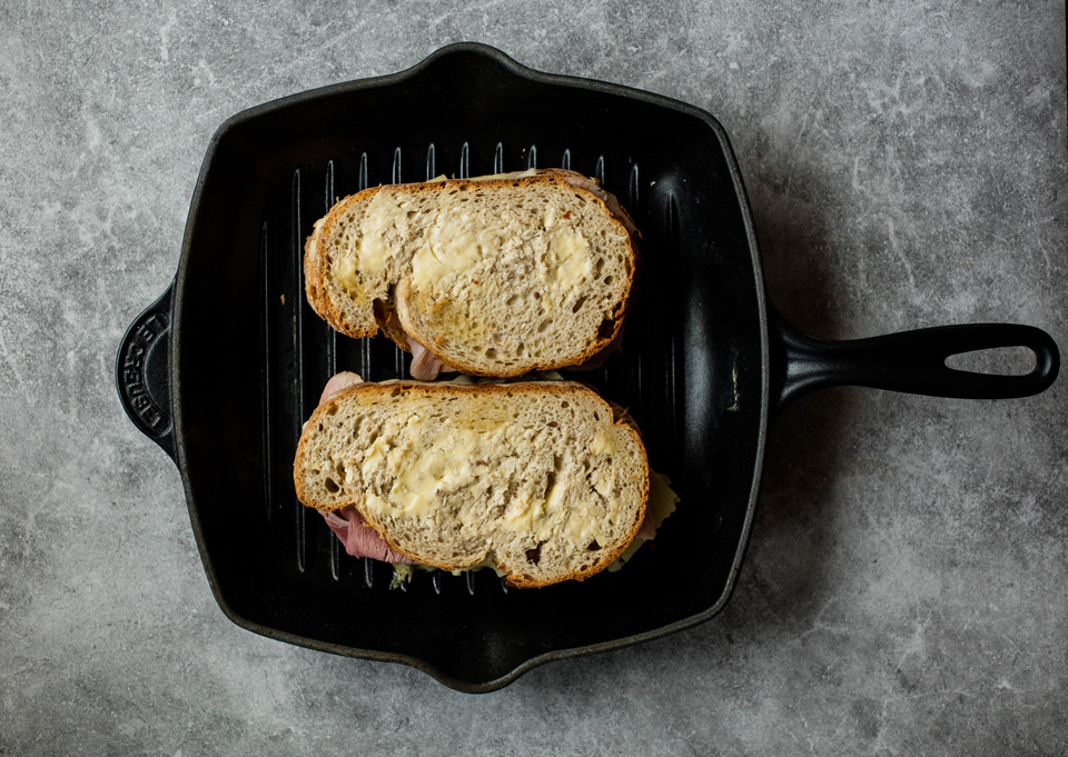 3. Stek ostesmørbrødene på middels varme i cirka 2–3 minutter på hver side.