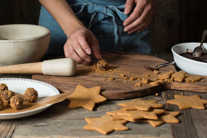 - Form små kuler av kald trøffelmasse.