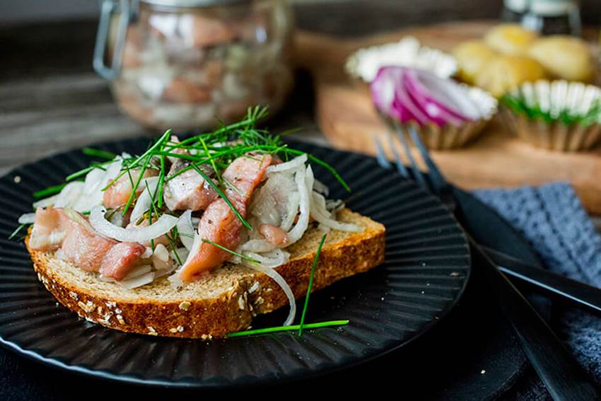 Havrebrødskive med sild og dill