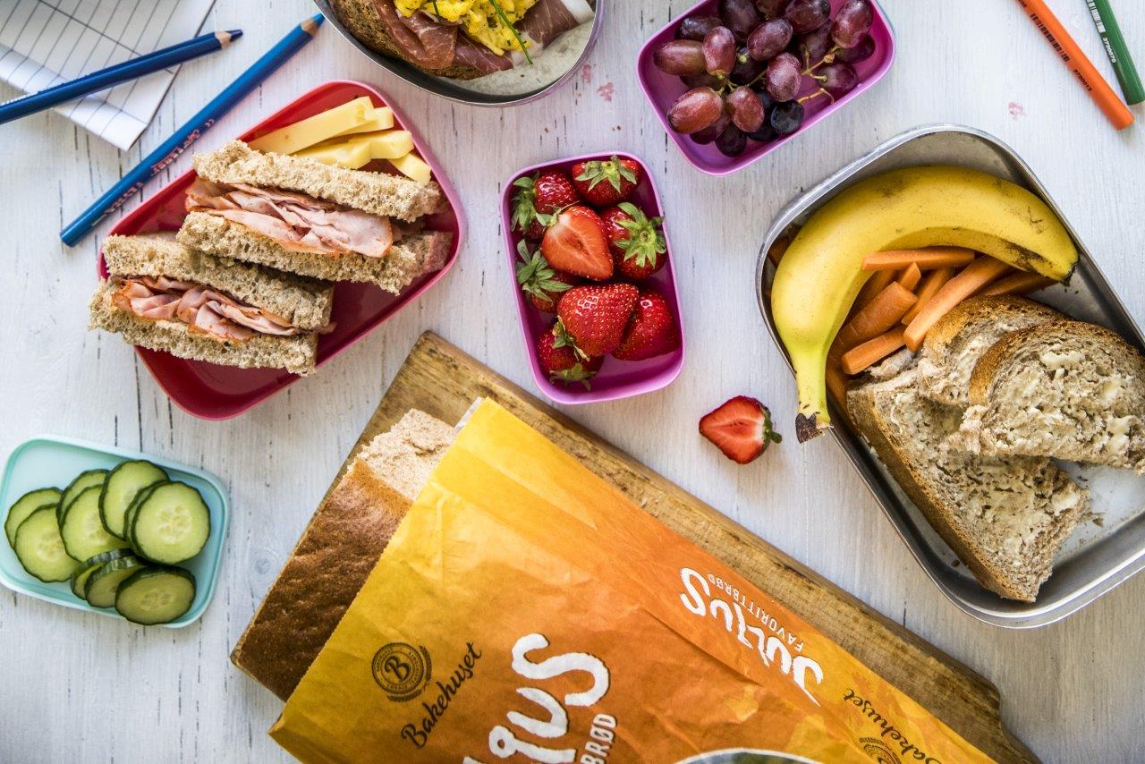 - Skjær skiver av brunosten og legg på rundstykkebunnen, pynt med blåbær eller andre foretrukne bær og til slutt rundstykketoppen.