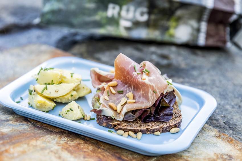 Rugbrød med salat og spekeskinke