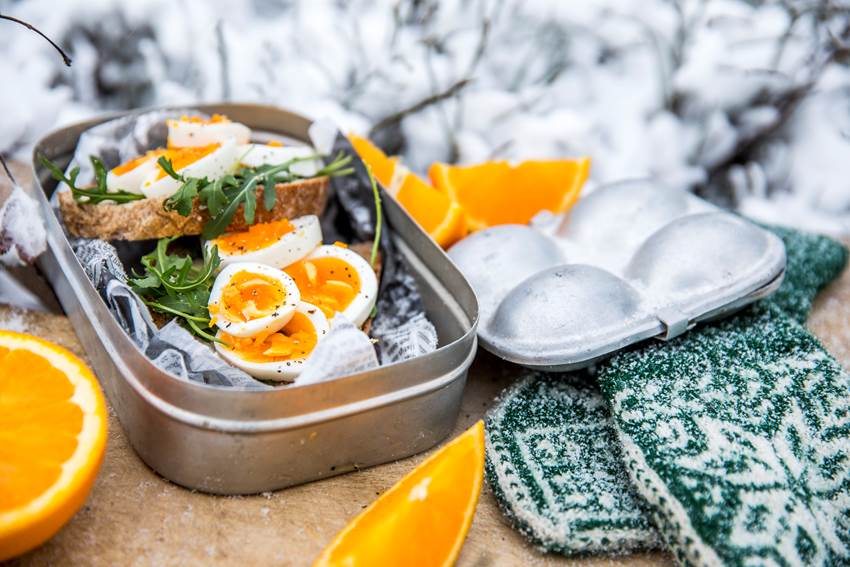 - Legg på smør på en skive speltbrød og topp med eggene og litt salt. Ruccola under eggene gir ekstra smak!